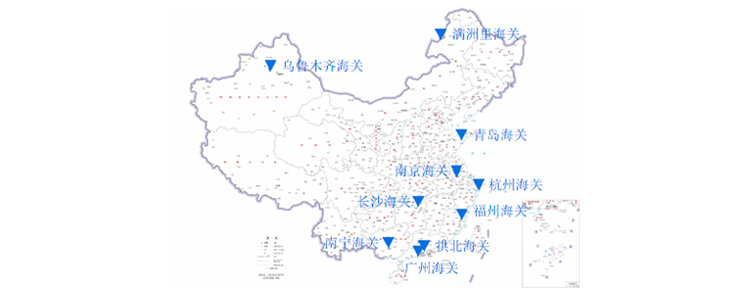 目前已在青岛、满洲里、南京、杭州、长沙、广州等直属关区落地应用,应用范围涵盖陆、海、空各类口岸。